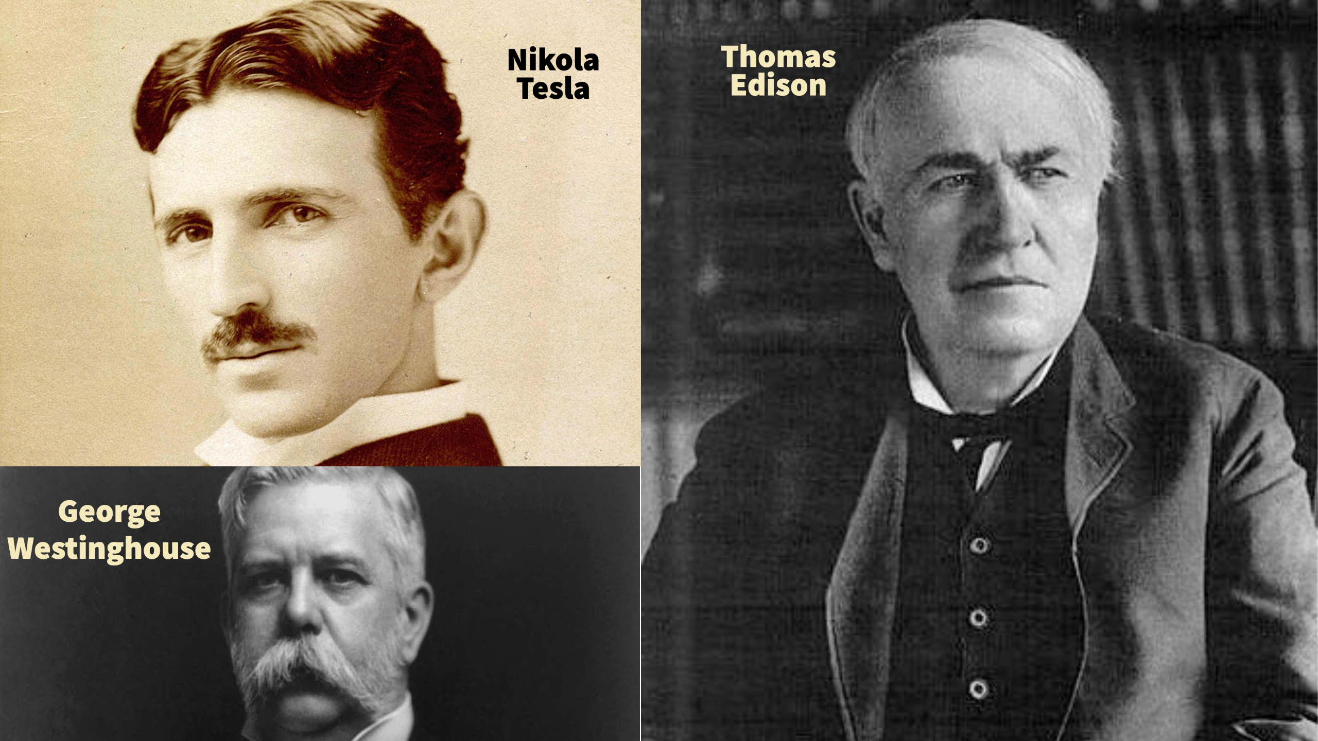 - Alternating current (AC) discovered by N. Tesla and sold by G. Westinghouse versus Direct current (DC) by